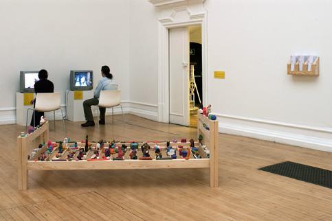 In her installation MiniFlux, London-based artist Hayley Newman tried to reproduce, in miniature, every object used in the 60s Fluxus movement's musical scores. Accompanied by a printed list of over 1000 objects, the installation became a score in itself through Newman's invitation to guest artists to devise performances based around the items on the list. Artists performing in Newman's space included the Bohman Brothers, Bruce Gilbert and Margarita Gluzberg.