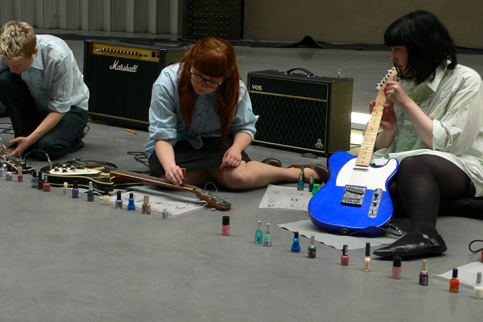 play their guitars with nail polish bottles in a range of techniques devised and instructed by Rosenfeld. The